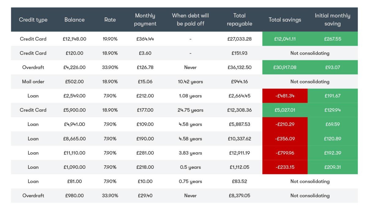 They’ll receive a personalised product suitability report, breaking down each debt, detailing the monthly and total costs or savings over the term of the loan.