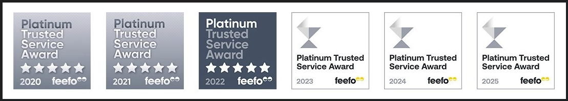 Based on our reviews, we’re delighted to have been awarded with Feefo’s prestigious Platinum Award for 6 years consecutively. Click on the image below to read more.